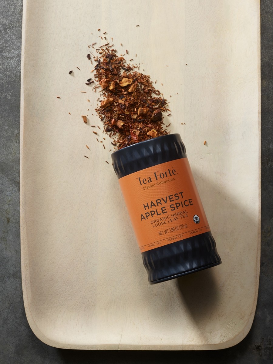 Harvest Apple Spice – o infuzie fara cofeina inspirata de gustul cidrului cald de mere, imbogatita cu note subtile de fructe si stejar.