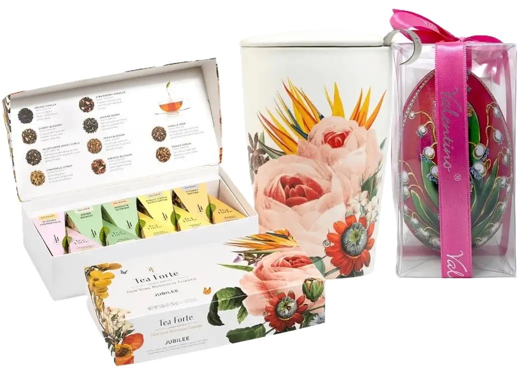 Cutie cu 10 piramide de ceai Petite Ribbon Jubilee: o selectie de ceaiuri premium Tea Forté, ambalate individual în pliculete piramidale, oferind o varietate de arome si experiente unice.