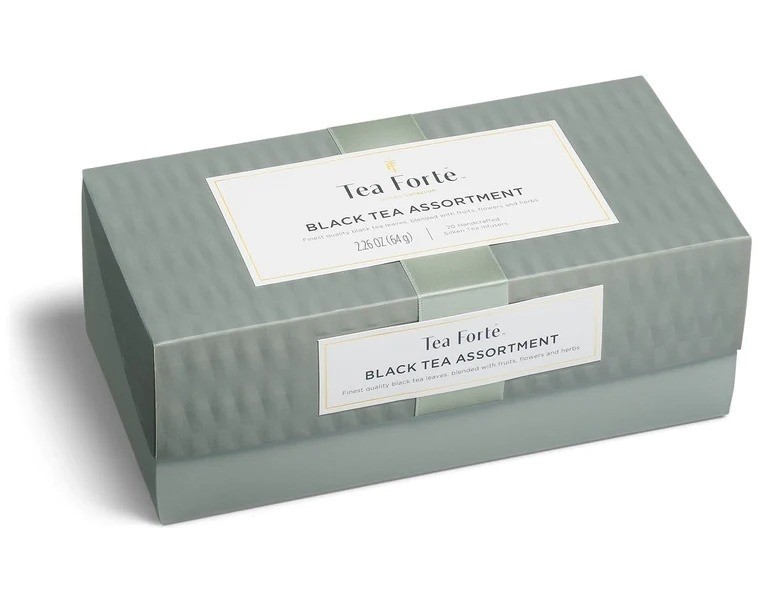 Cutie cu 20 piramide din colectia Black. Frunze de ceai negru de cea mai buna calitate, amestecate cu fructe, flori si ierburi. Cutia contine 20 de piramide, dintre urmatoarele amestecuri de ceai negru: Black Currant, Earl Grey, English Breakfast, Estate Darjeeling si Orchid Vanilla.