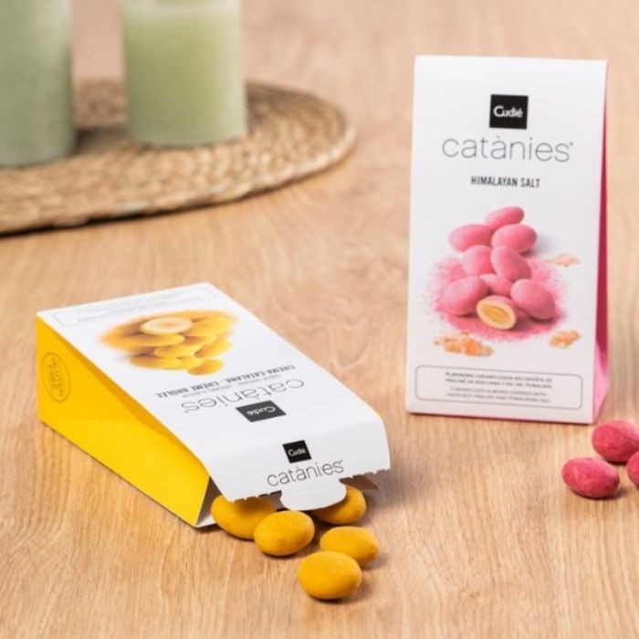 Migdalele caramelizate Catanies sunt cea mai recenta creatie a familiei Cudié. Un echilibru perfect intre pralinele sale rafinate si migdalele marcona, care amintesc de cele mai traditionale creme catalane.