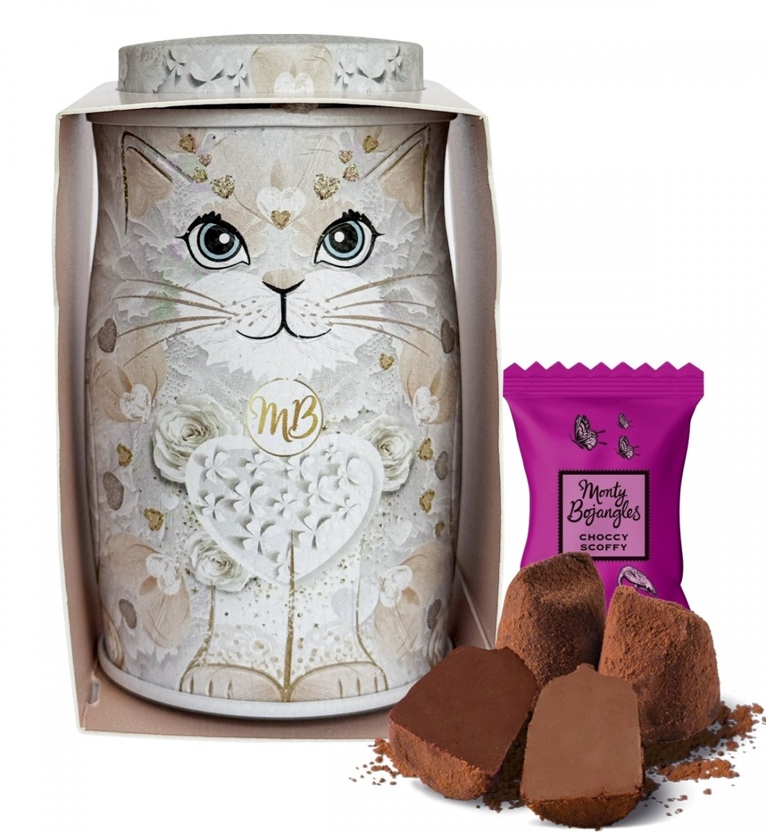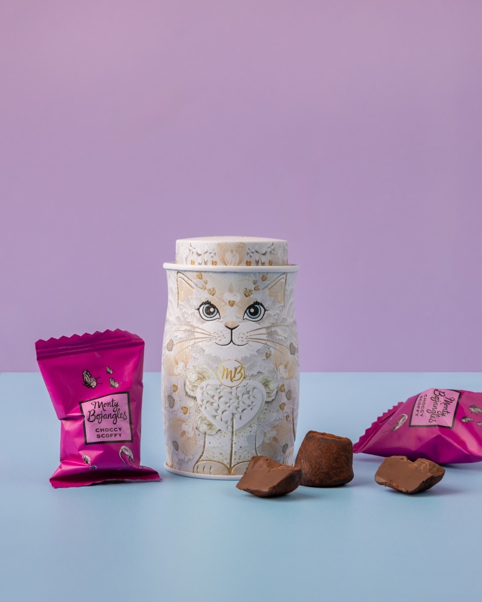 Monty Bojangles sunt cele mai gustoase delicii din regat, castigand multe premii Great Taste in fiecare an, facand din Monty Bojangles un mare producator de gustari si trufe de ciocolata, exceptional de delicioase! Potrivit pentru vegani si adorat de toata lumea. Fiecare cutie este conceputa in mod unic ca o pisica frumoasa si fantastica, fiecare cu propria personalitate si propriul farmec! Cutia contine 14 trufe ambalate individual, de dimensiunea potrivita pentru o delectare indulgenta.